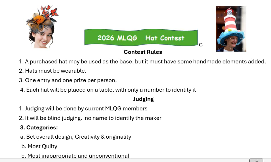 We look forward to seeing your creations for the Hat Contest.